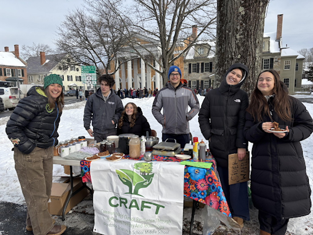 CRAFT students Sophia Rosenbach, Aleks Cirovic, Brody Allen, Hannah Lantigne, Ashton Perkins and Lindsey St. Cyr spent several hours in the cold on Saturday selling waffles to the many people at the annual Wassail celebration in Woodstock. People loved the waffles and were pleased to donate to the CRAFT program. Students raised money to help support the different field experiences and speakers we learn from in CRAFT.