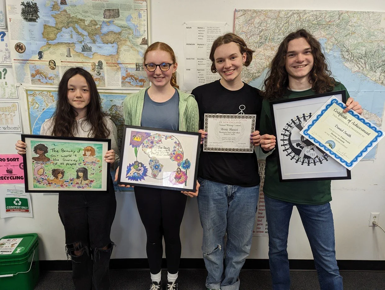 In the Vermont Foreign Language Association's Annual Poster Contest,. Clara Burkholder earned 3rd place in the middle school division. Sophia Randolph earned 3rd place in the high school division. Danny Smith earned 1st place in the digital category (open to all grades).