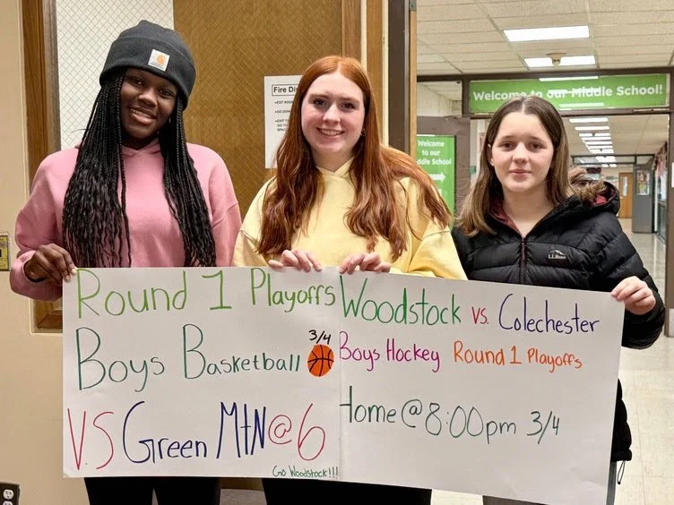 Members of the Spirit Team made poster for upcoming Sports and YOH theater.
