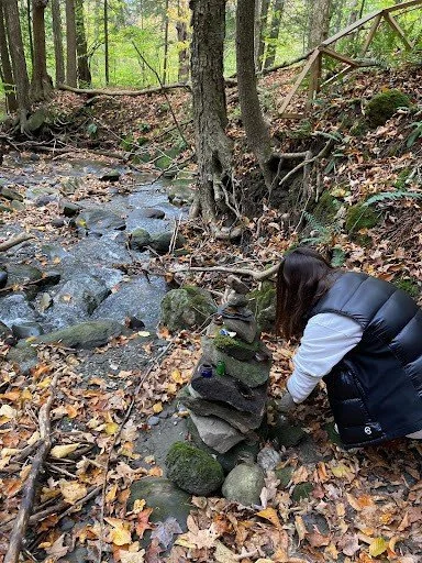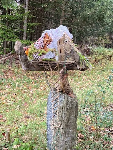 A hidden world, a sunken ship, an abandoned picnic, an immersive web and an abstract expression of moving water… These are just some of the ideas expressed at the Land Trust trail by 16 talented Eco-Art students.