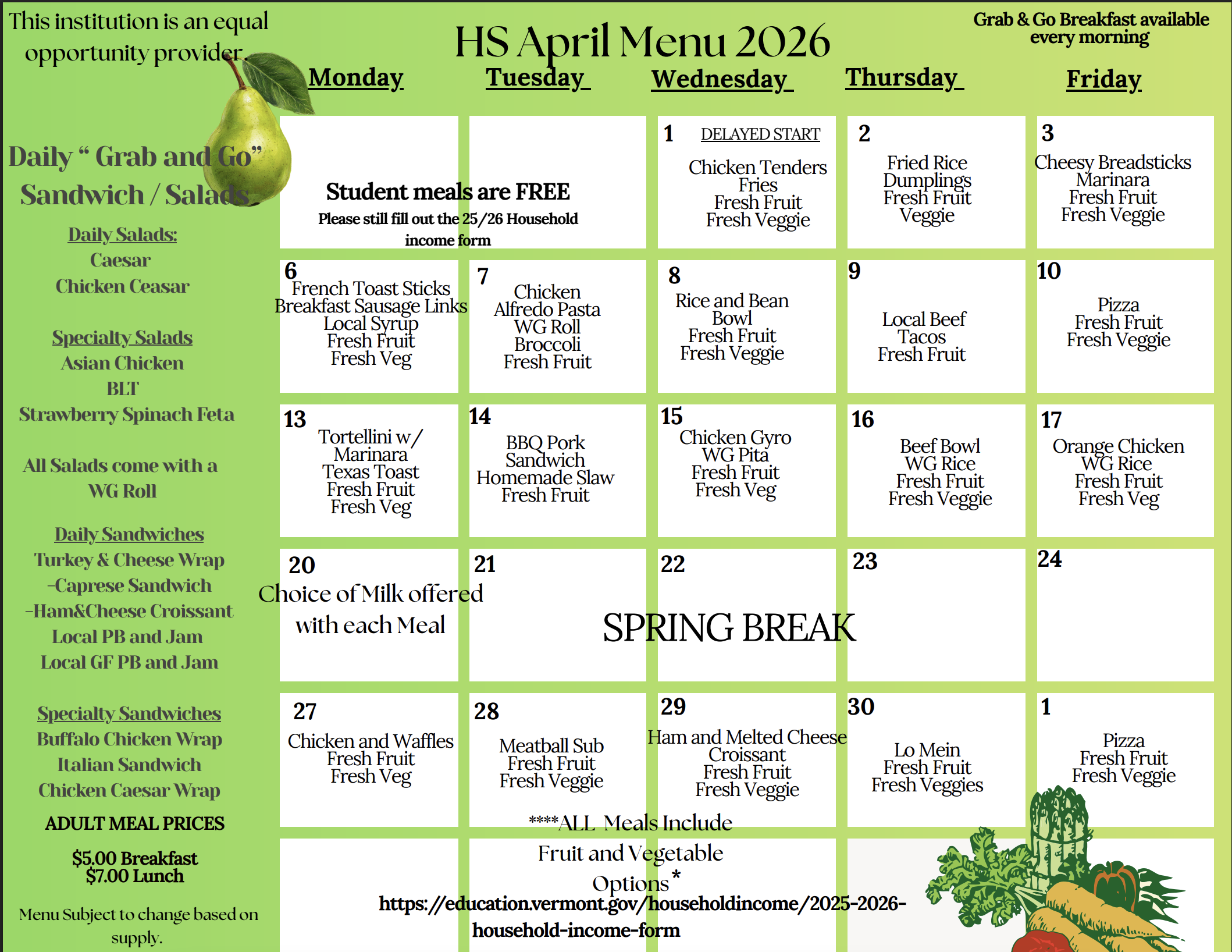 WUHSMS Nutrition Visit the Mountain Views Supervisory Union Nutrition Program for more information regarding our meal program! Monthly lunch menu Download print version (.PDF) View fullsize
